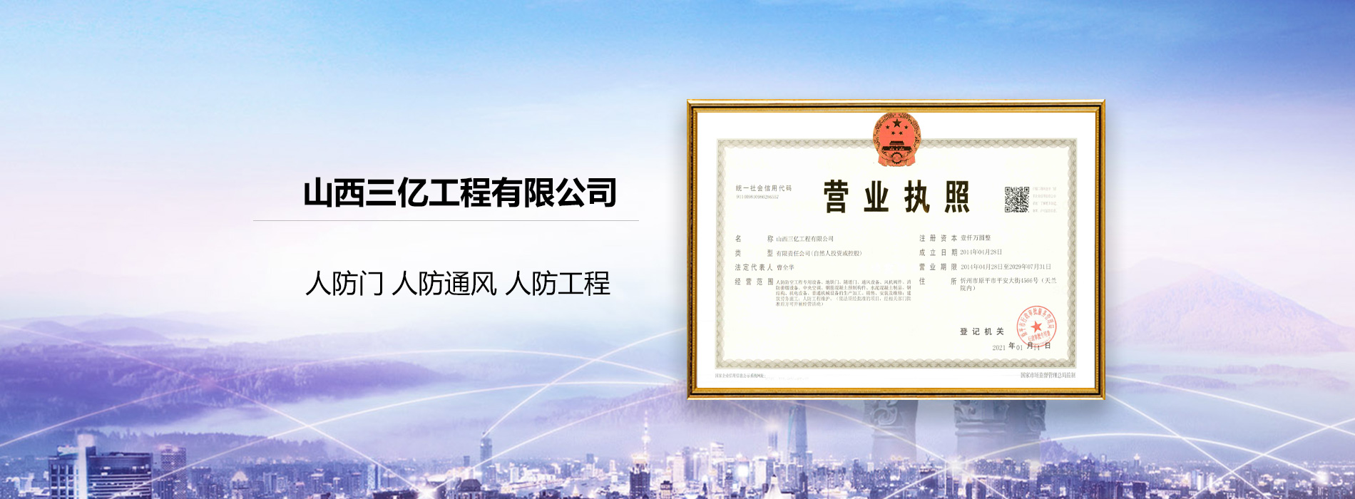 山西三億工程有限公司是經人民防空辦公室批準的人防工程的生產和定點安裝企業。公司及研發.制造.銷售.服務于一體,產品通過 ISO9001 質量認證,并列入《人民防空設備產品目錄》。